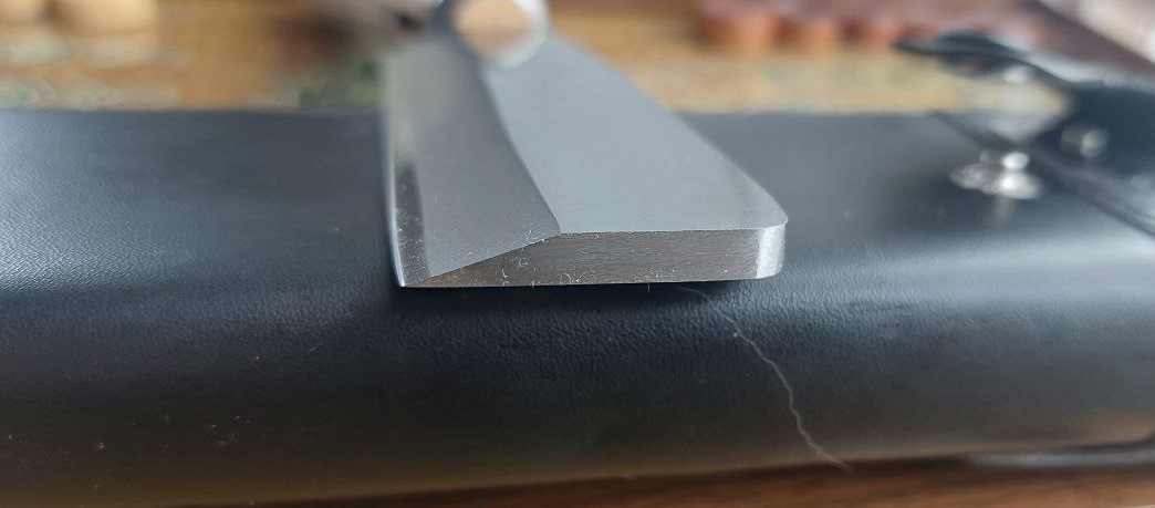 Лезо трохи нахилене відносно руків’я, що полегшує рубання. Дерев’яна ручка виготовлена з міцного дуба.